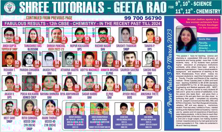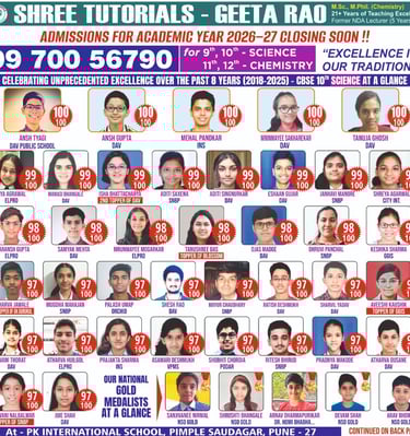 Join Shree Tutorials β Geeta Rao for 9th & 10th CBSE Science Coaching in Pimple Saudagar. Expert guidance, small batches, regular tests & board exam preparation. Enroll now.