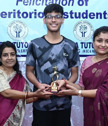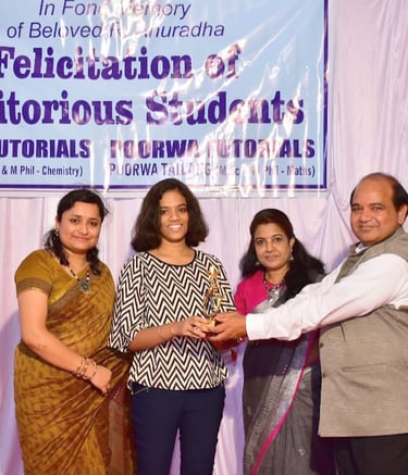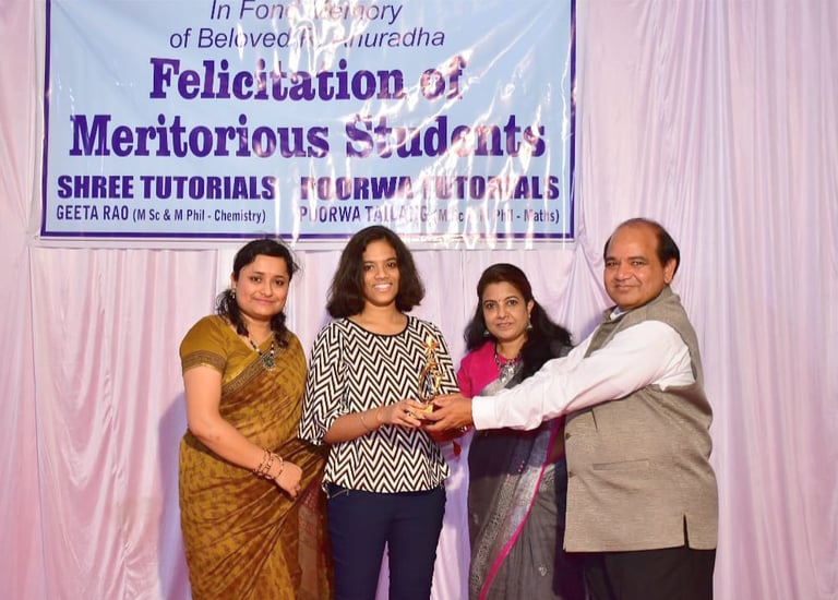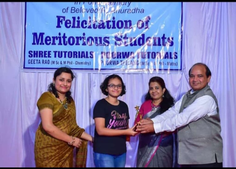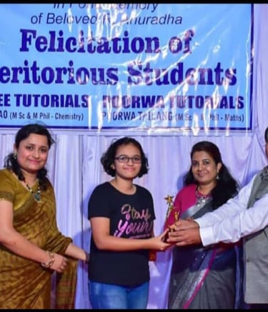 100/100 in Science, Achiever Tanuja Ghosh Felicitated by Dr Gufran Beig Director IITM along with the teacher and mentor Geeta Rao, also Maths teacher Poorwa Tailang
