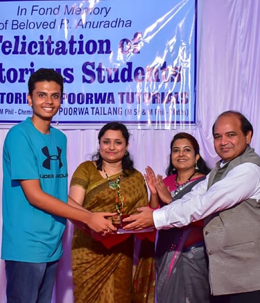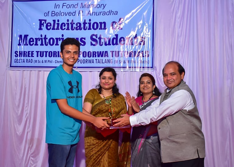 Mehal Pandkar achieved 100/100 in Science, being Felicitated by the Director IITM Dr Gufran Beig along with his Science teacher and mentor Geeta Rao along with Maths teacher Tailanng